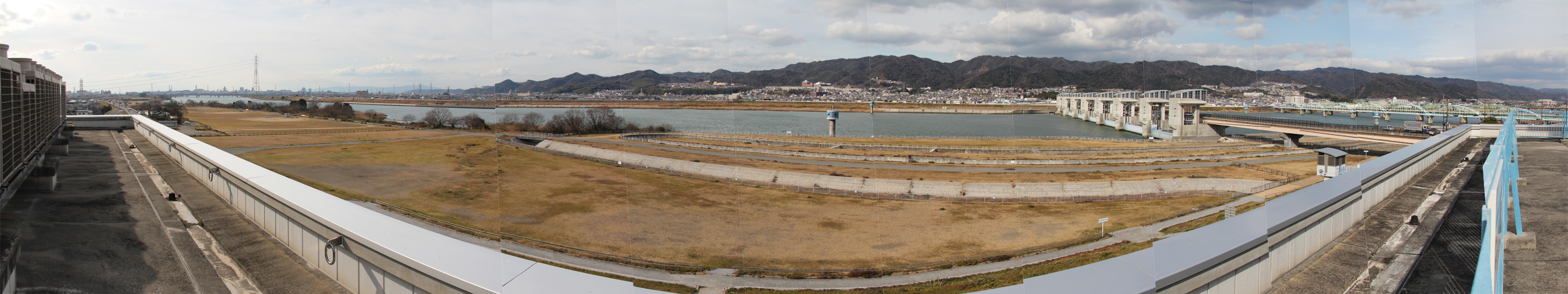 紀の川大堰を含んだ紀の川筋を少し高い視点から眺めることができます。